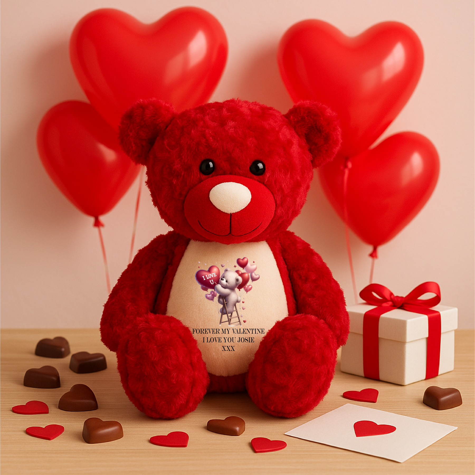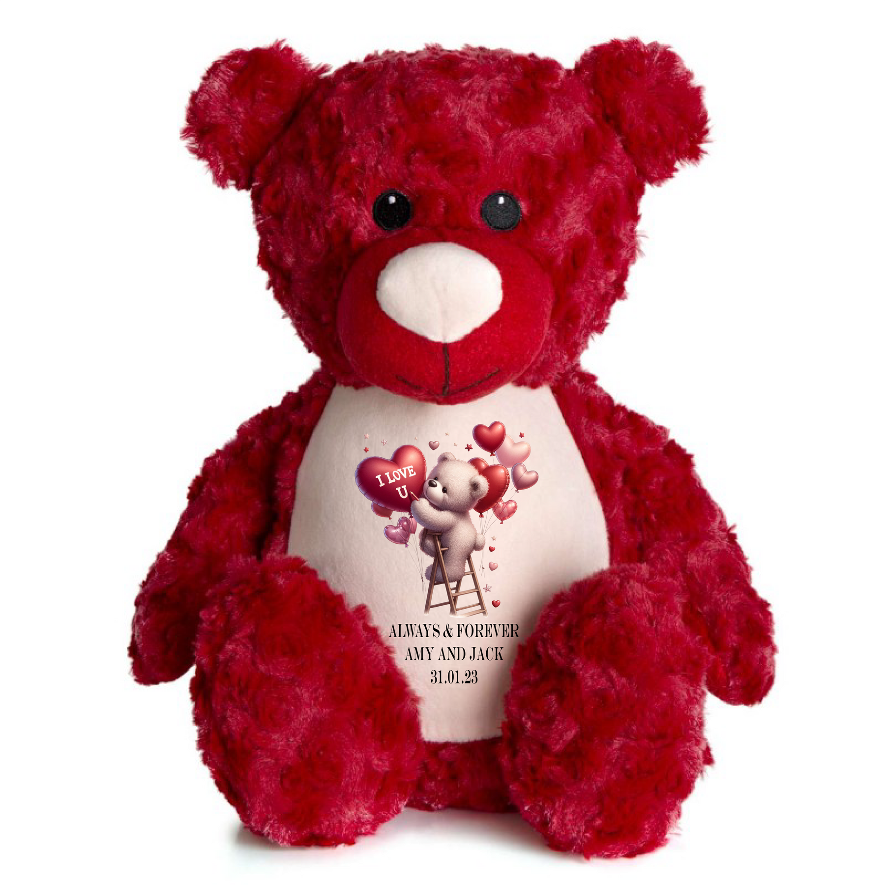 Show your love in the sweetest way with our Personalised Red Teddy Bear, a beautifully soft keepsake designed to celebrate your most meaningful moments. Featuring your own custom text and special date alongside a heartfelt “I Love U” design, this cuddly plush makes the perfect romantic gesture. Whether it’s for Valentine’s Day, an anniversary, a wedding gift, a birthday surprise, or simply to say “I love you,” this personalised teddy is a timeless token of affection made to be treasured for years to come.